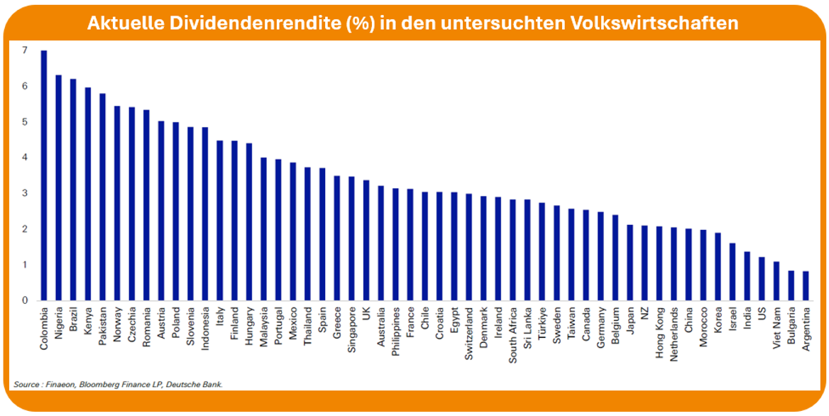 Auch heute unterscheiden sich Bewertungen und Dividendenrenditen weltweit stark. Historisch waren solche Unterschiede ein wichtiger Treiber langfristiger Renditeunterschiede.