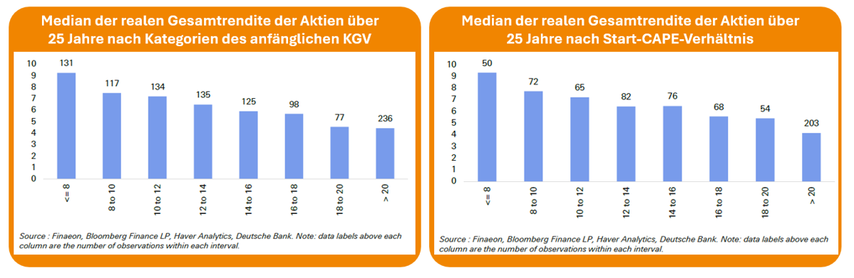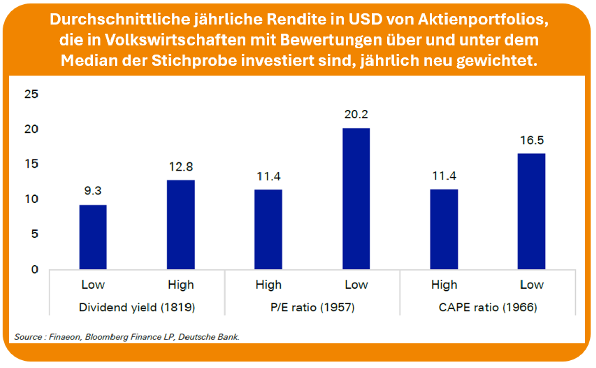 Die Studie der Deutschen Bank zeigt sehr klar: Über lange Zeiträume hinweg ist die Bewertung beim Einstieg der stärkste Einflussfaktor für die späteren Renditen.