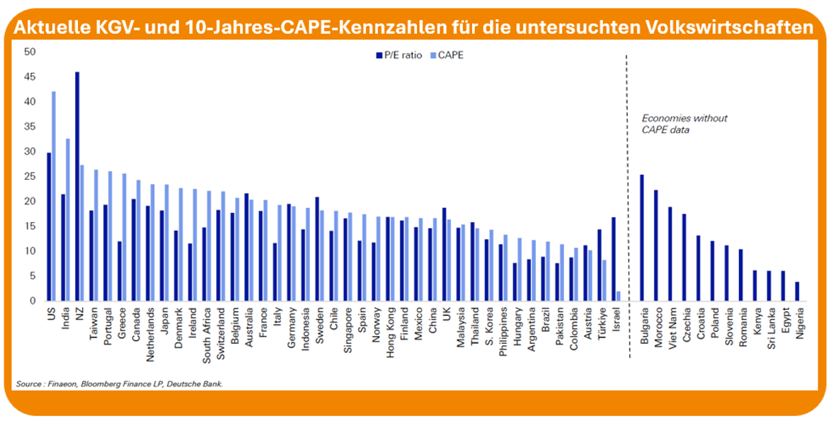 Die Deutsche-Bank-Studie untersucht Bewertungen auf Länderebene: Welche Länder sind teuer? Welche günstig? Wie entwickeln sich die Renditen danach?